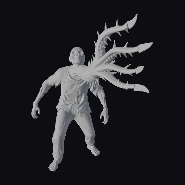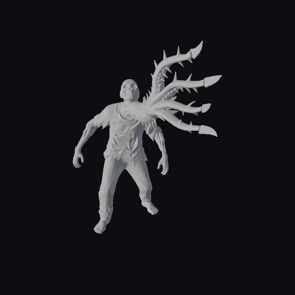 The Zombie with Thorned Arm stands with a menacing posture, its body a canvas of gray and dark hues that evoke a sense of dread. The thorn-like protrusions on its arm are sharply detailed, appearing as if they’ve grown organically from its skin. The model’s texture suggests a decaying, almost undead flesh, with visible signs of rot and decay. The facial expression is one of rage or agony, adding to the overall horror aesthetic. This model would be perfect for projects that require a dark, gothic, or post-apocalyptic feel, such as horror games, animations, or dark fantasy art pieces. Its unique mutation makes it a standout character in any scene.