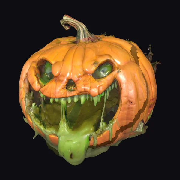 This zombified flower head boasts a detailed, cartoonish design. The model’s pose showcases a menacing face with a wide, toothy mouth and a single, bulging eye, set against a backdrop of wilted, yellow and orange petals tinged with red and pink hues. The stem and leaves are a vibrant green, with the base of the flower displaying a mix of green and pink tones. The texture is smooth, with visible veins on the leaves and stem. This model is perfect for use in games, 3D printing, VR/AR experiences, animations, or designs that require a touch of dark humor and Halloween spirit.